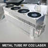 SUNWAY CO2 RF laser marking machine is a gas laser with CO2 as laser medium and wavelength near 10.6um. When high voltage is added to electrodes, discharging through the cavity will excite CO2 molecules and produce 10.6um laser radiation. The laser can be directed to process materials.
